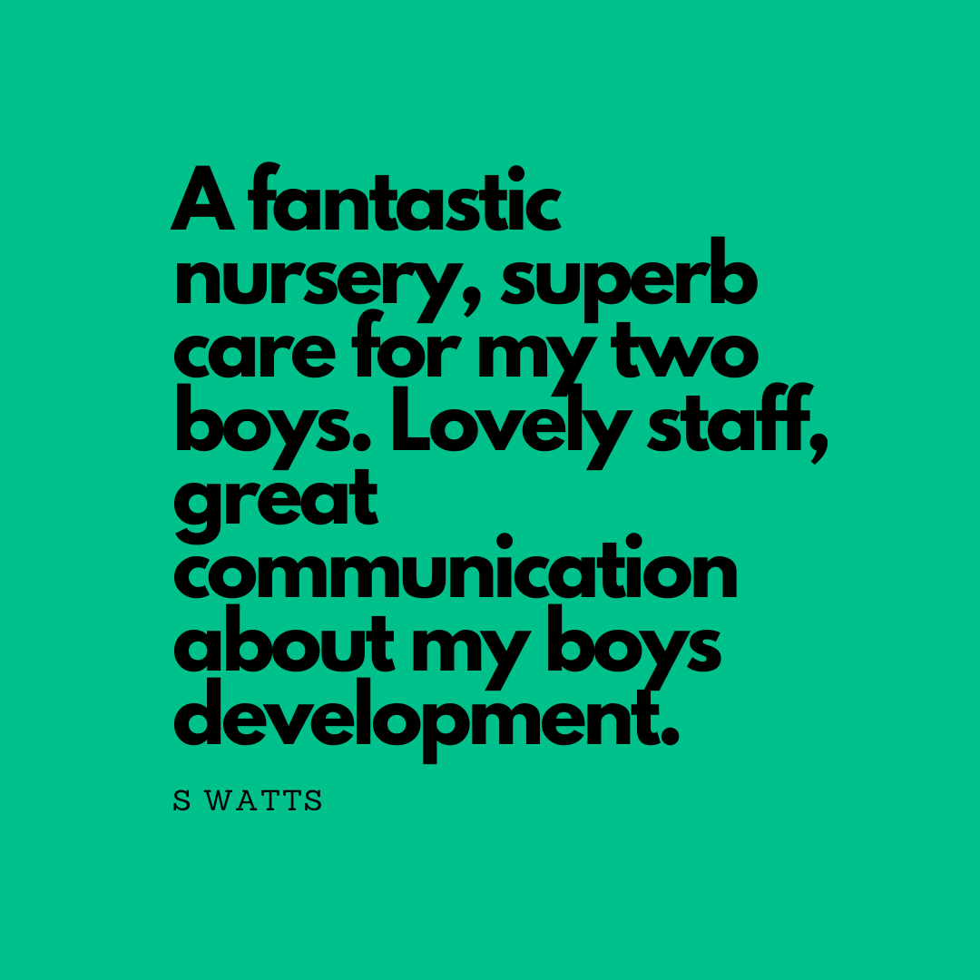 In our last Ofsted inspection, Ofsted had this to say ' 'Children arrive happily at the nursery and settle very quickly into their environment. They have close bonds with the staff, who are warm, kind and caring towards them. Children demonstrate a positive attitude towards their learning and are quick to get involved in different activities and experiences’.